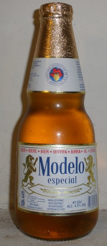 Meksikoon kun päästiin, niin jatkettiin heti toisella saman maan oluella. Epäolutmaiseen pikkupulloon pakattu juhlavan oloinen olut on ehkä maultaan hieman Solia vahvempi ja metallisempi, mutta selkeästi amerikanjuomaa tämäkin. Maku on hyvin lyhyt, Macen mielestä jotenkin vetinen. Jälkimakua ei juuri ole.